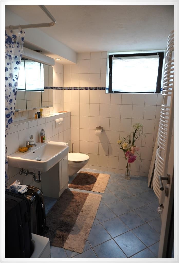 Das Badzimmer ist mit Dusche, Wanne und Fenster ausgestattet.