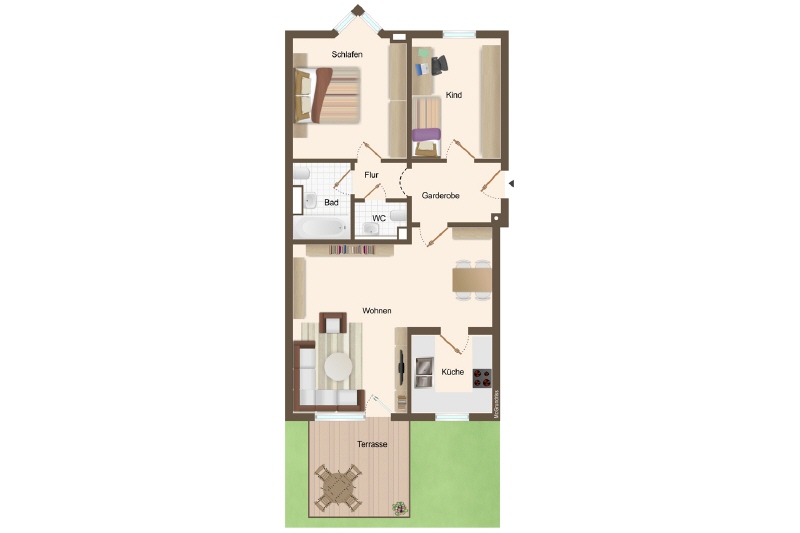+ eigener Garten mit Terrasse in Süd-Ausrichtung