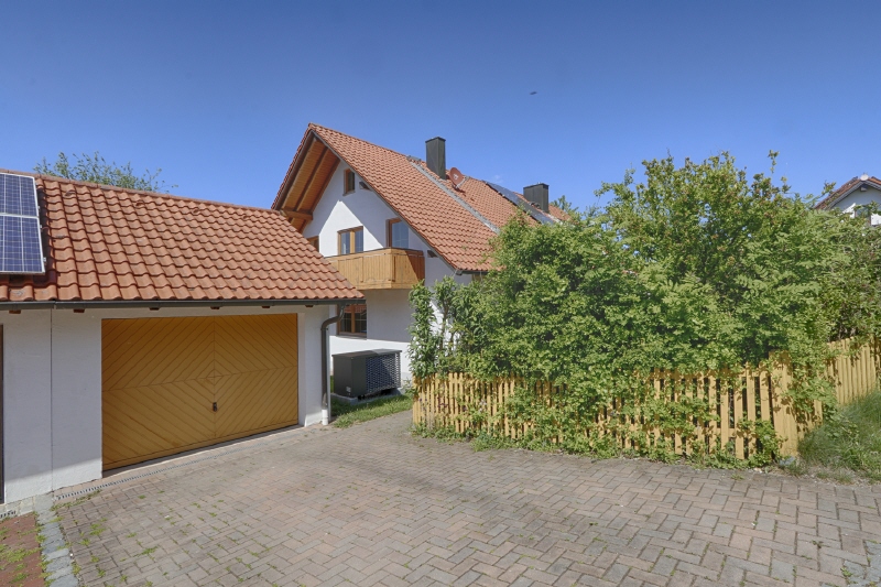 Beschreibung:Diese attraktive Doppelhaushälfte überzeugt durch ihre praktische Raumaufteilung und einer soliden Ausstattung. Das Haus bietet ein gemütliches Zuhause für Familien oder Paare, die Wert auf Komfort in einer ruhigen Umgebung legen. Beim Betreten des Hauses gelangen Sie über einen hellen Eingangsbereich mit separater Garderobe und Gäste-WC in einen großzügigen Wohnbereich mit Kaminofen und Zugang zu einer sonnigen Terrasse. Große Fenster sorgen für viel Tageslicht und schaffen eine angenehme Atmosphäre. Neben dem Esszimmer, das ebenfalls mit einem gemütlichem Kaminofen ausgestattet ist, befindet sich die Küche, die über eine funktionale Einbauküche verfügt. Über eine offene, massive Treppe erreichen Sie das Dachgeschoss, in dem sich ein helles Bad mit Badewanne und Dusche sowie ein Kinder- und ein Schlafzimmer mit jeweils einem Zugang zu einem Balkon befinden. Zusätzlich könnte der Dachspitz noch ausgebaut werden und weiteren Platz schaffen. Weiterhin stehen im Untergeschoss ein Waschraum, zwei geräumige Hobbyräume sowie ein Heizungs- und Technikraum zur Verfügung. Im Jahr 2025 wurde das Haus bereits mit einer modernen und energieeffizienten Wärmepumpenheizung ausgestattet. Darüber hinaus stehen im Außenbereich ein liebevoll angelegter Garten mit Gartenhaus und Brennholzlager, eine Einzelgarage mit elektrischem Toröffner sowie ein Stellplatz zur Verfügung. Insgesamt präsentiert sich diese Doppelhaushälfte in einem äußerst gepflegten Zustand und bietet eine solide Basis für komfortables Wohnen in einer ruhigen und gleichzeitig gut angebundenen Lage.