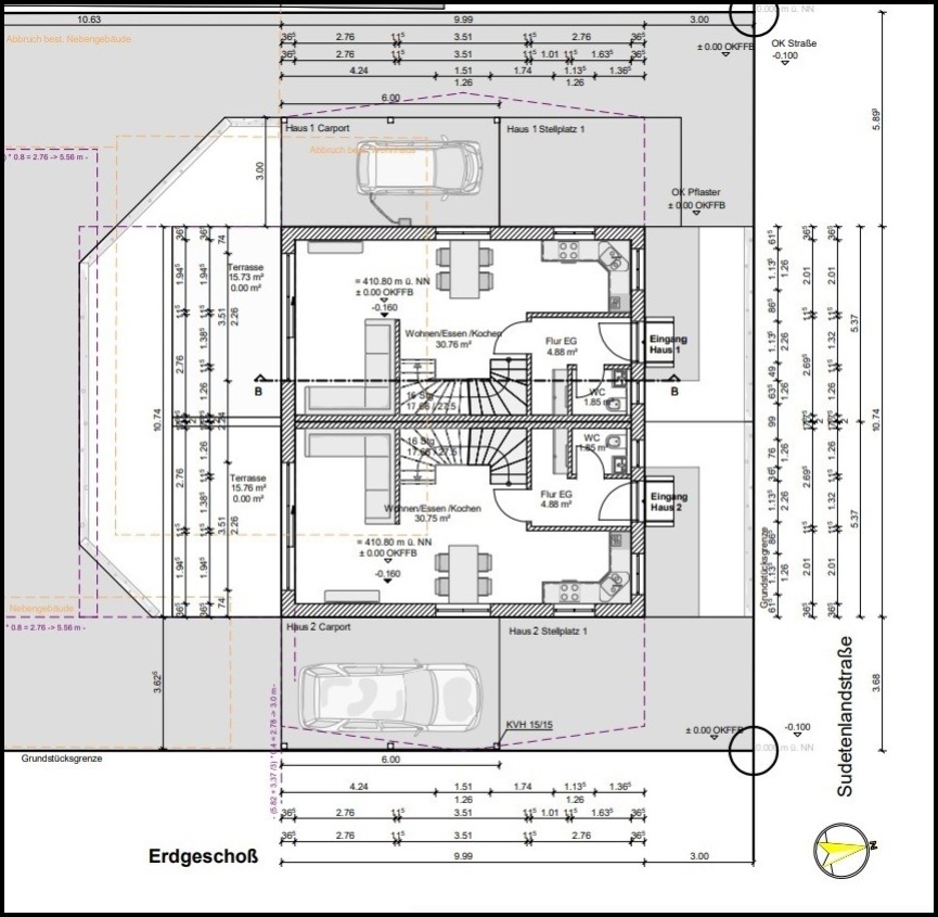 Zur Info, damit man sich besser ein Bild machen kann, die neue Bebauung ist mit einer Höhe 9,19 Meter ungefähr so hoch wie der Altbestand.