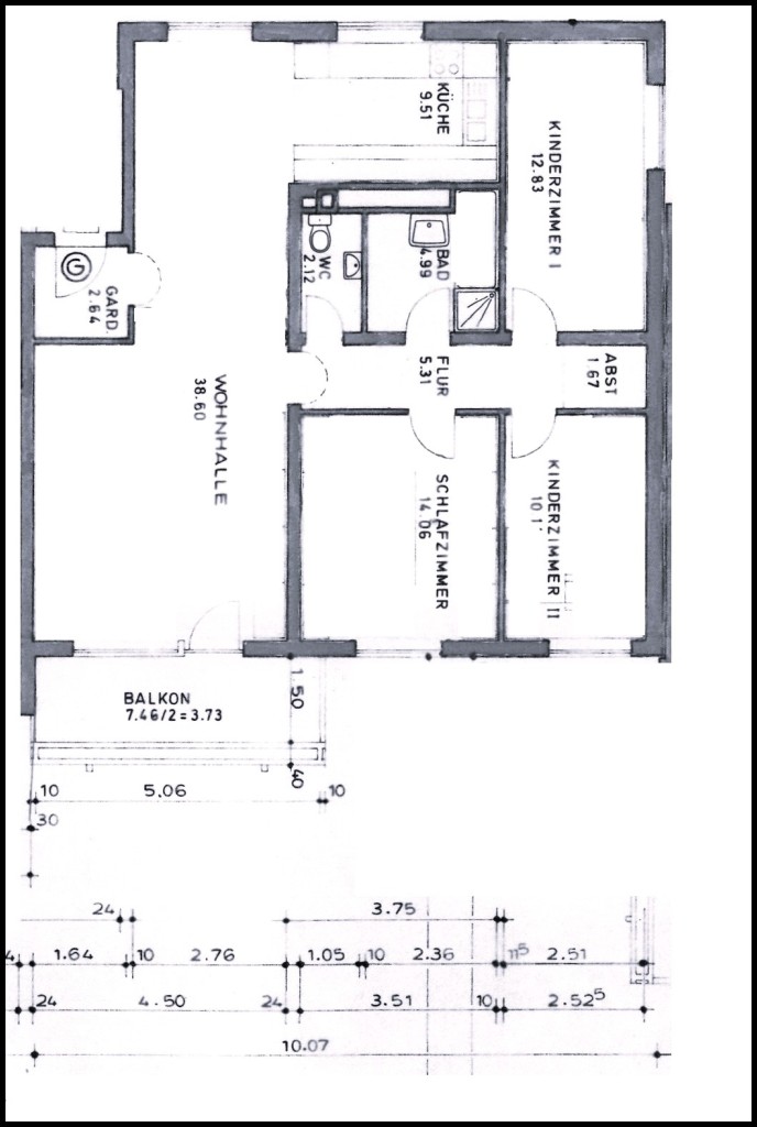 Zuzüglich 60,- EUR monatlich für den Tiefgaragenstellplatz.