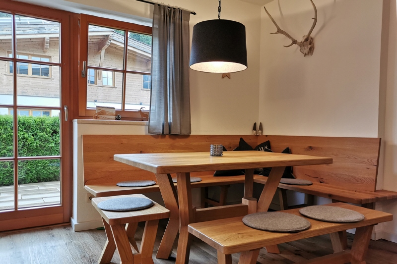 Die Gemeinde Ellmau liegt malerisch eingebettet zwischen dem imposanten Kalkmassiv des Wilden Kaisers im Norden und dem Hartkaiser im Süden auf 820 Metern Höhe, direkt am Fuße des Naturschutzgebiets Wilder Kaiser, nur etwa 15 Kilometer von Kitzbühel entfernt. Der charmante Tiroler Ort zählt sowohl zu den begehrtesten Sommer- als auch Wintersportdestinationen der Region. Ein Highlight für Golfliebhaber ist der 27-Loch-Golfplatz mit atemberaubendem Alpenpanorama. Für Familien und Aktivurlauber bietet das große Erlebnisschwimmbad Abwechslung und Erholung. Die Standseilbahn führt direkt auf den Hartkaiser und verbindet Ellmau mit der Skiwelt Wilder Kaiser - Brixental, einem der größten zusammenhängenden Skigebiete Österreichs: 279 perfekt präparierte Pistenkilometer, davon über 180 km beschneibar, 90 moderne Bahnen und Lifte sowie über 70 urige Hütten und Bergrestaurants garantieren Wintersportvergnügen auf höchstem Niveau. Ellmau verfügt über eine ausgezeichnete Infrastruktur. Zahlreiche Einkaufsmöglichkeiten für den täglichen Bedarf sowie eine große Auswahl an Gastronomiebetrieben – von der gemütlichen Tiroler Stube bis zum gehobenen Restaurant – runden das Angebot ab.