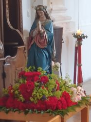 Der Festgottesdienst, welcher würdevoll und unter Einbindung aller Gläubingen vom Pfarrer und den Mitwirkenden zelebriert wurde, fand in einer voll besetzten Kirche einen würdigen Rahmen. Bereits zu Beginn wies das Kirchenpersonal auf den anschließenden Ablauf der Prozession hin.