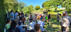 Auch die Isener Kindergärten waren vertreten. Wolfgang Fritz, der den Mäander geschaffen hat und Thomas Lohmeier, von dem der Eiszeitfindling stammt. Noch viele Gäste wären aufzuzählen: Leute, die mit Geld oder mit Arbeit unterstützt haben, die Anrainer, die Baumpaten und last, but not least unsere Mitglieder.