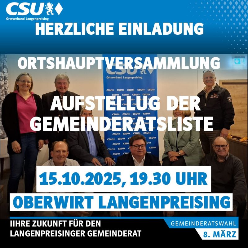 der Ortsverband Langenpreising spricht eine herzliche Einladung an alle Mitbürger und Interessenten aus.