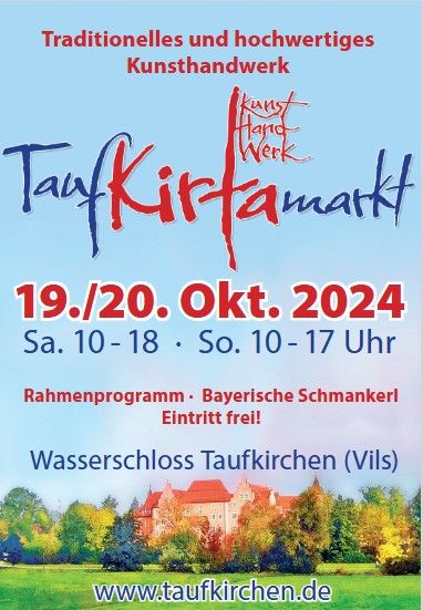 Der 11. TaufKirtamarkt findet am 18. Und 19.10.2025 im Taufkirchener Wasserschloss statt.