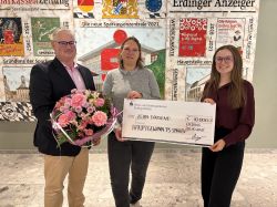 v.l.n.r. Stv. Leiter Beratungscenter Erding Hauptstelle Sascha Ramin-Rubinstein, Gewinnerin Simone Schick, Kunden-beraterin Sarah Adamy