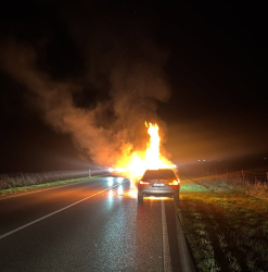 St2580: In der Nacht von Freitag auf Samstag gegen 02:30 Uhr geriet auf der Flughafentangente Ost bei Eitting ein BMW in Brand und brannte dabei vollständig aus.