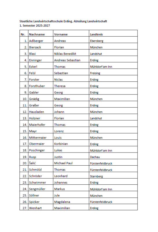 Quelle: AELF Ebersberg-Erding, Studierende des 1.Semesters der Landwirtschaftsschule Erding mit Lehrkräften
