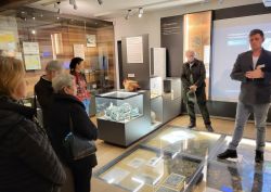 Neben Belegen aus der Steinzeit, der Kelten- und Römerzeit steht "selbstverständlich" der 2015 geborgene frühbronzezeitliche Spangenbarrenhort - ein über 80 kg wiegender Kupferschatz aus der Zeit um 1650 v. Chr. mit knapp 800 Barren und weiteren Objekten - im thematischen Mittelpunkt der ca. einstündigen Sonderführung.