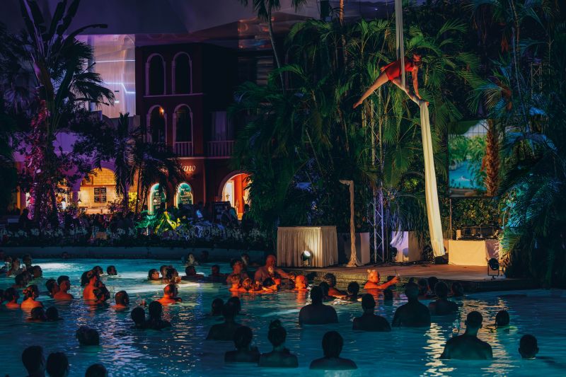 In der größten Saunalandschaft der Welt präsentierten über 50 internationale Aufgussmeister ihre kreativsten Inszenierungen. Mitreißende Choreografien, verführerische Düfte und spektakuläre Showaufgüsse machten jeden Besuch zu einem unvergesslichen Erlebnis.