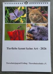 Die Tierschutzjugend Erding hat ihren neuen Jahreskalender für 2026 vorgestellt. Unter dem Motto „Tierliebe kennt keine Art“ zeigt der Kalender eine Auswahl an Tier- und Naturfotografien, die verdeutlichen sollen, dass jedes Lebewesen – unabhängig von Art oder Größe – Wertschätzung und Schutz verdient.