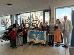 Grundschulkinder gestalten Bild für VR-Bank-Zweigstelle