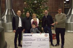 Am 1. Dezember übergab die Geschäftsführung der Privatbrauerei den Scheck an die Familie Grill im Rahmen einer Brauereibesichtigung im Besucherzentrum