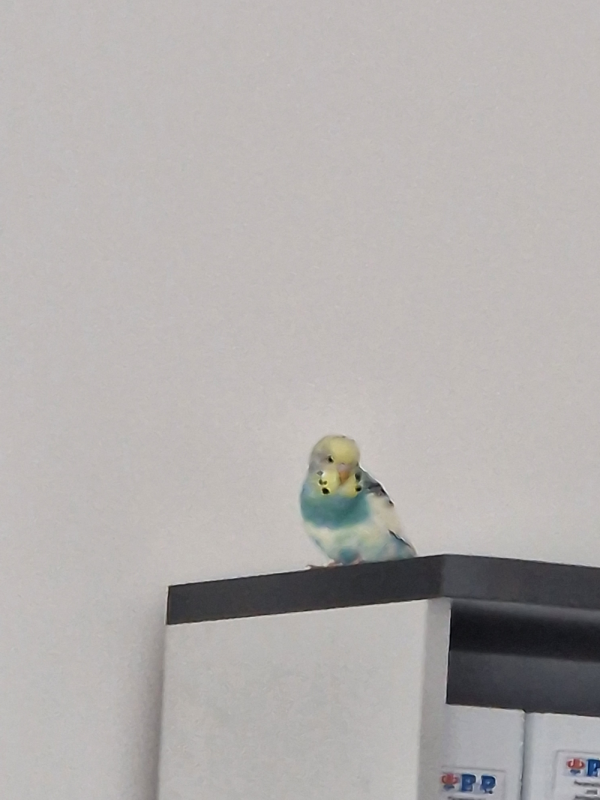 Uns ist gerade ein Wellensittich zugeflogen.
