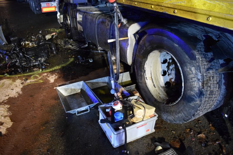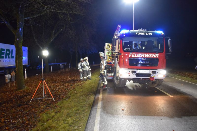 Die FFW Forstern war mit 20 Einsatzkräften vor Ort und band auslaufenden Diesel und weitere Betriebsstoffe.