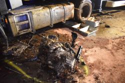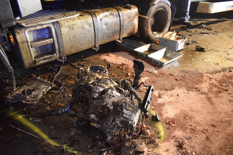 Durch die Wucht des Aufpralls wurde der Motorblock aus dem Opel gerissen und gegen einen geparkten Lkw geschleudert.
