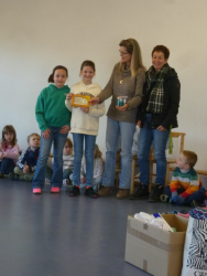 Die Kinder und Eltern spendeten fleißig und so konnten am heutigen Mittwoch die dringend benötigten Utensilien sowie ein Geldbetrag von stolzen 275,50 Euro an die Mitarbeiterinnen des Vereins Tatendrang e. V. übergeben werden.