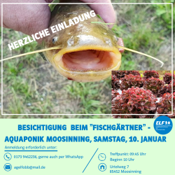 Die Arbeitsgemeinschaft ELF, Kreisverband Erding, lädt herzlich zu einem interessanten Besuch des Aquaponikbetriebs „Der Fischgärtner“ in Moosinning ein.