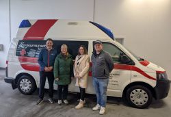 Seitens des BRK nahmen Kreisgeschäftsführer Andreas Lindner und einer der beiden ehrenamtlichen Fahrzeugwarte des Herzenswunschmobils, Jonas Menzinger, die Spende dankend entgegen.