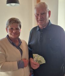 So kamen auf Maiers Bitte hin insgesamt 1500 Euro Spenden für die Nachbarschaftshilfe/Tafel Erding zusammen, die der Eittinger umgehend an die Vorsitzende der NBH, Petra Bauernfeind, überreichte