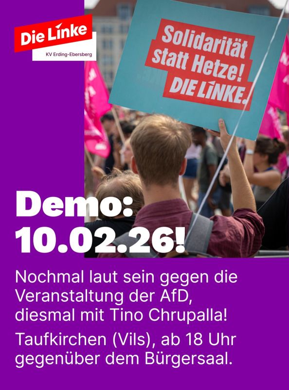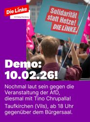 Während die AfD am Dienstag, den 10. Februar 2026, Tino Chrupalla im Bürgersaal Taufkirchen eine Bühne bietet, werden wir direkt gegenüber zeigen, dass Ausgrenzung und Hetze in unserer Gemeinde keinen widerspruchsfreien Raum finden.