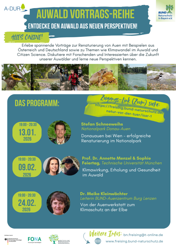 Winter-Vortrags-Reihe des Naturwald-Projektes A-DUR zur Erforschung des neuen Naturwaldes Isarauen von München bis Landshut mit dem Citizen-Science-Modul des BUND Naturschutz (BN)