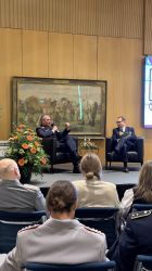 Im Anschluss hat Herr Hans Moritz als Moderator ein offenes Gespräch mit dem 3-Sterne-General geführt. Bemerkenswert waren insbesondere die positiven und offenen Aussagen zu den Themen aktuelle Sicherheitslage, Wehrpflicht und gesamtstaatliche Sicherheitsvorsorge.