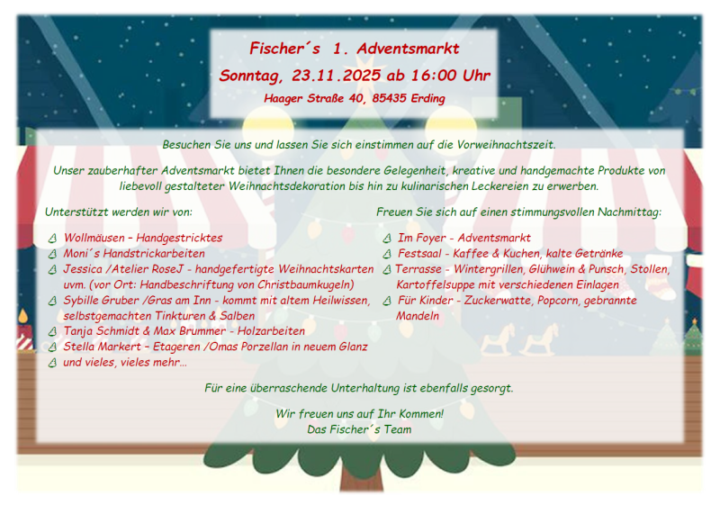 Besuchen Sie uns und lassen Sie sich einstimmen auf die Vorweihnachtszeit.